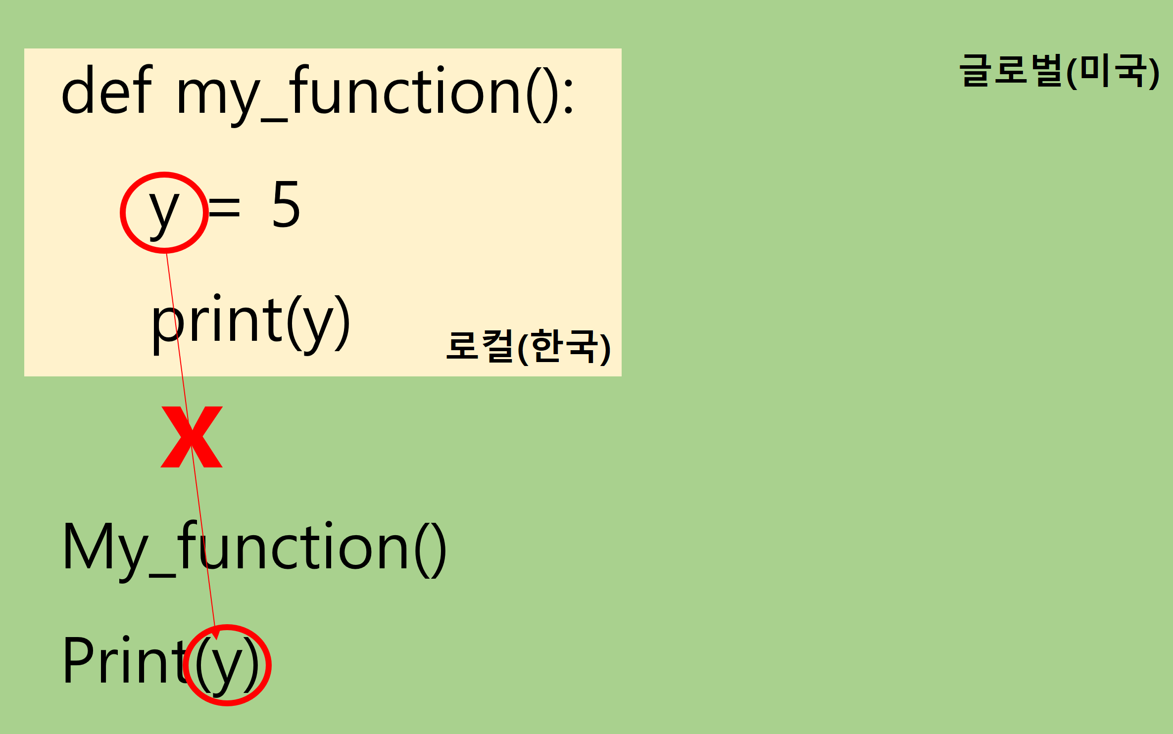 print(y) # 오류 발생 (y는 함수 내에서만 존재)