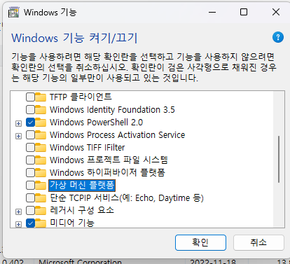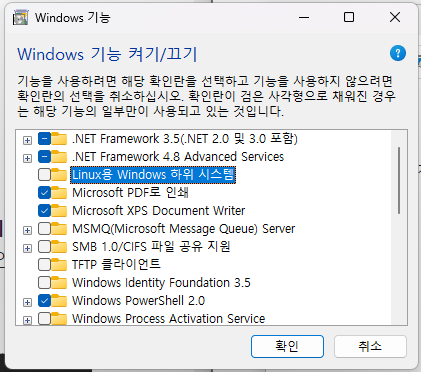 1. WSL 활성화 및 가상화 기능 설정
