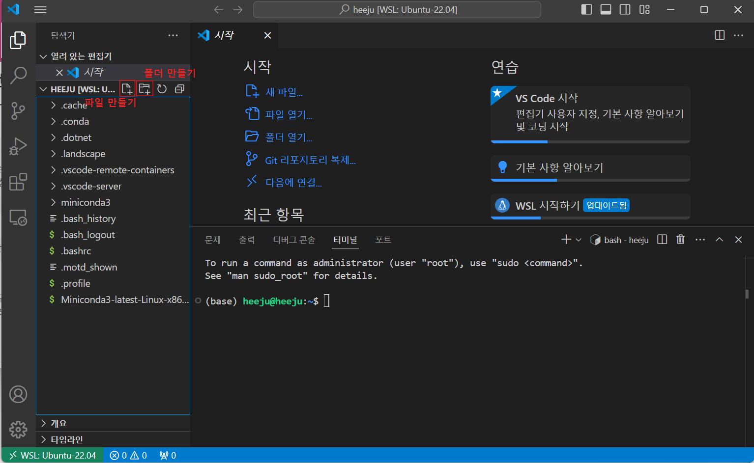 🔴VSCode에서 WSL환경 실행하기