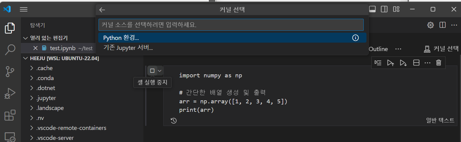 설치가 끝났다면, test.ipynb 파일에서 아래 코드를 입력해 실행해보세요.