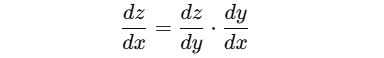 함수 z가 y를 거쳐 x에 의존하는 경우 z를 x에 대해 미분하는 과정은 아래의 식과 같다.